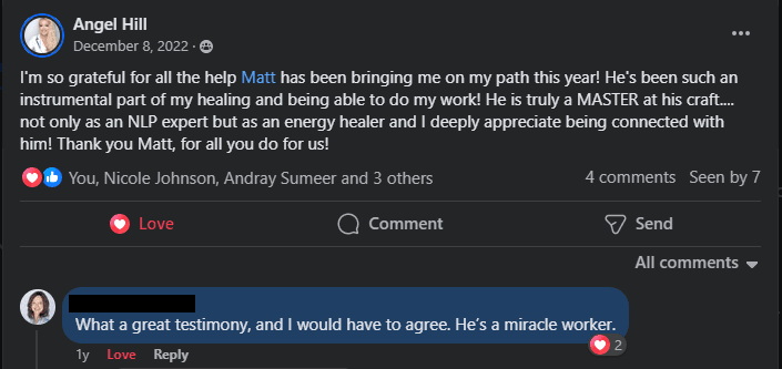 I discovered incredible tools to rewire my subconscious programming, learning from the best of the best in both NLP and Hypnosis.